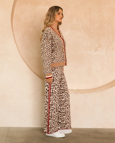 The Leopard Luxe Cardigan is your statement knit with a polished edge - crafted in a soft, breathable rayon blend with contrast burgandy/white rib ...