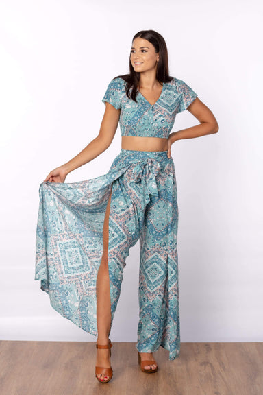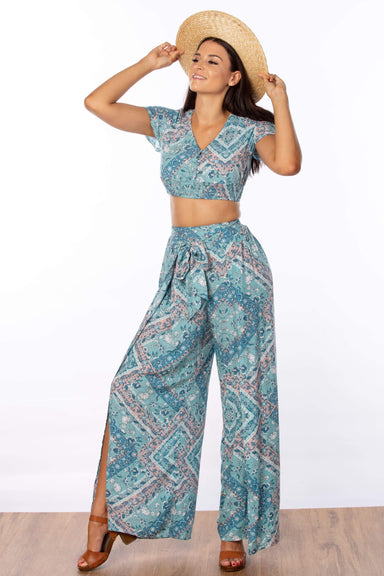 Ocean Breeze (Crop Top) Cropped Length V Neckline Short Sleeved Button Down Top Shirred Elasticised Waist and Cuff Floral Print Unlined FABRIC...