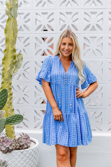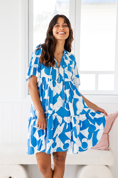 Mini Length V Neckline Short Flowy Sleeves Buttons from Bust Down Attached Tie-up Around Collar Discreet Lining Print Unlined 55% Cotton/45% Vis...