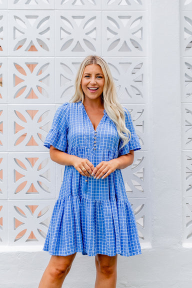 Above the Knee Length V Neckline Short Flowy Sleeves Buttons from Bust Down Attached Tie-up Around Collar 55% Rayon/45% Polyester All sizing is in...
