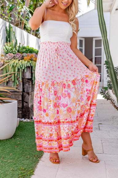 Midi/Maxi Length Skirt High Waisted Elasticised Waistband with Tie-Up Tiered Layering Unlined 100% Rayon All sizing is in Australian. Please use t...