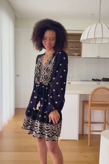Mini Length Long Sleeve with Cuff Unattached Belt Buttons Down Front Embroidered Details 100% Rayon All sizing is in Australian. Please use the si...