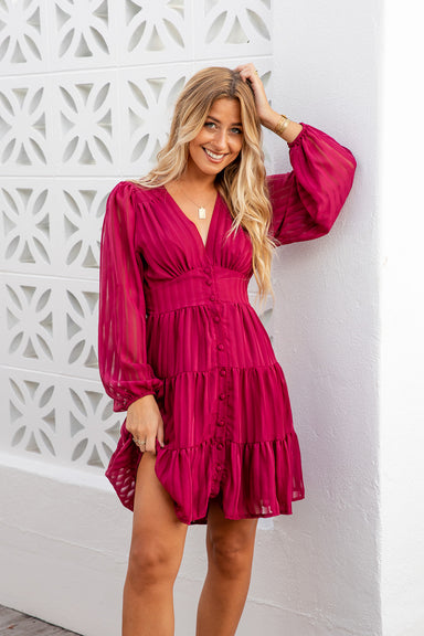 Mini Length V Neckline Sheer Long Sleeves with Elastic Cuff Buttons from Waist Down Elastic Back Waistband 100% Polyester Lining: 100% Rayon All s...