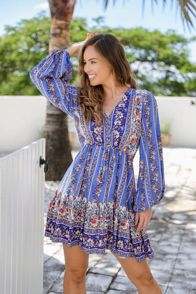 Above the Knee Length Rounded Neckline Elbow Length Sleeves with Elastic Cuff Shirred Bodice 100% Cotton Tiered Layering All sizing is in Australi...