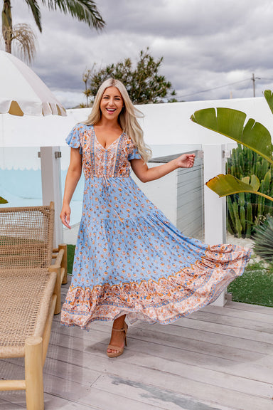 The Kristy Dress - Floral Blue