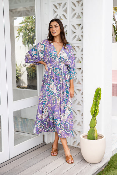 Maxi Length Dress V Neckline Elbow Length Sleeves Buttons from Bust Down Tie-Up Under the Bust Embroidered Borders 100% Rayon All sizing is in Aus...