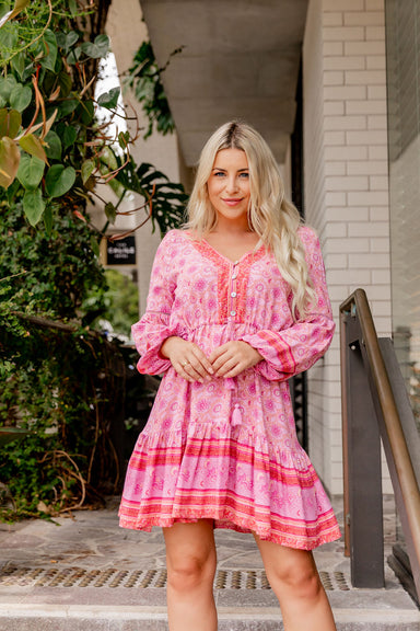 Mini Length Dress V Neckline Elbow Length Bell Sleeves Buttons from Bust Down Tie-Up Under the Bust Unlined 100% Rayon All sizing is in Australia...