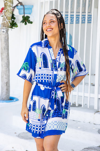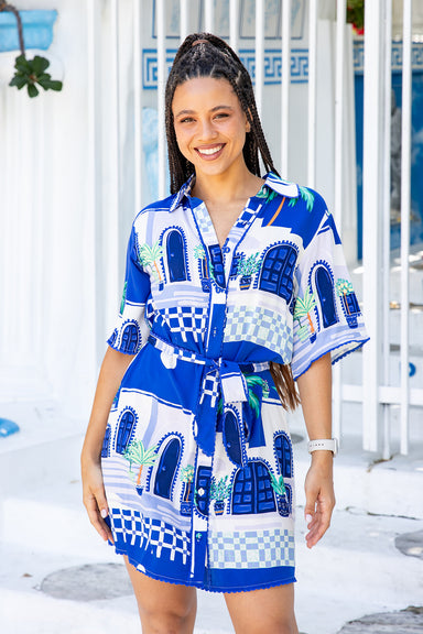 Mini Length V Neckline Stylish Buttons Down Front Elbow Length Sleeve Elastic Waistband In-Built Rope Belt 100% Rayon All sizing is in Australi...