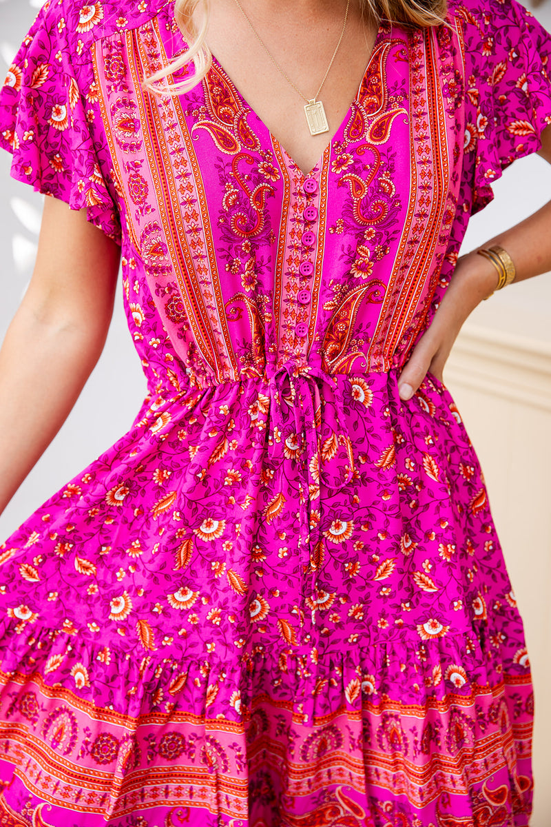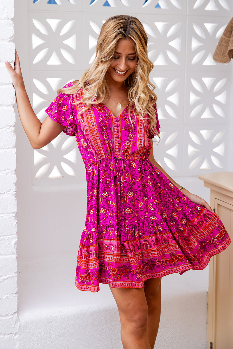 Our model is wearing a Small/Size 8 AU and Size 4 US. She is 165cms tall, Hips: 86cms, Waist: 66cms, Chest: 82cms.